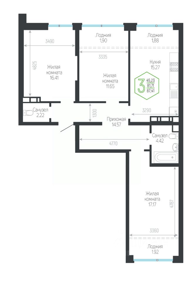 Продаётся 3-комнатная квартира в сданном доме (Дом 132/1 Корпус 5), срок сдачи: IV-кв. 2023, общей площадью 87.41 кв.м., на 3 этаже. Новый жилой комплекс ''Гарантия на Обрывной'' от застройщика ''Гарантия'' расположен по адресу город Краснодар, Обрывная улица.