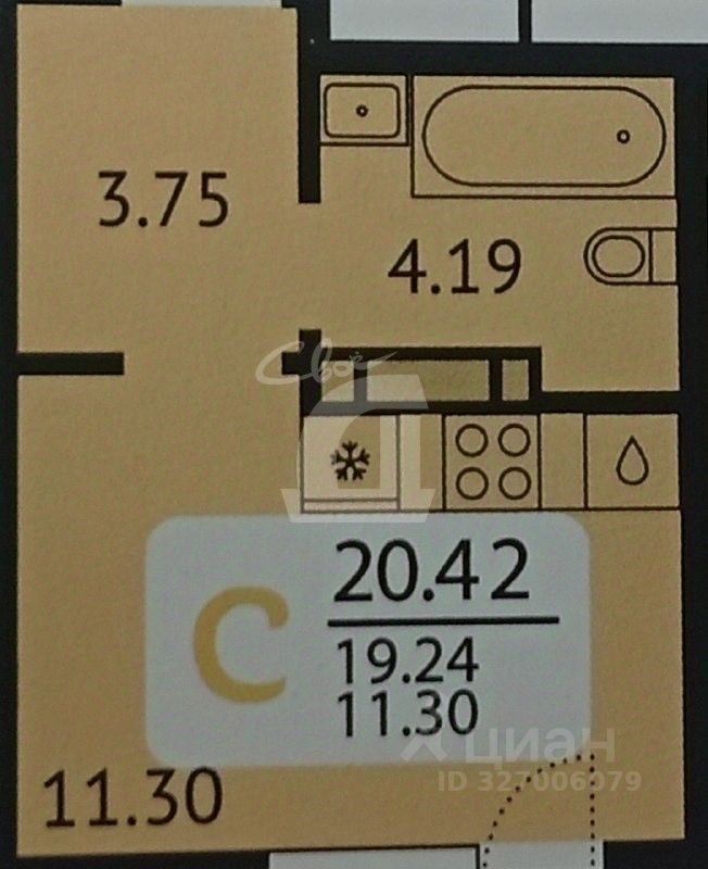 Площадь - 20 м2 с лоджией.