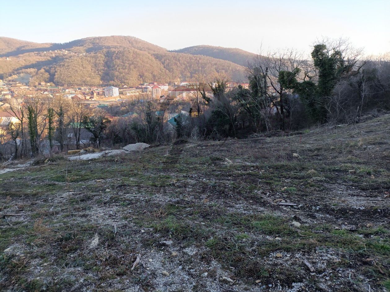 С участка открывается шикарный вид на горы и поселок. Отличная локация, место подойдет как для дома, дачи так и для курортного бизнеса.