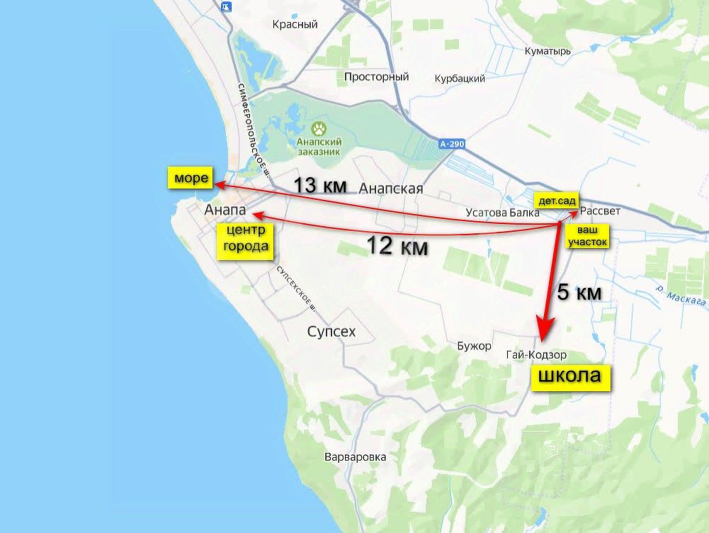 Продаётся земельный участок в в пригороде г. Анапа (в 15 км), х. Рассвет, общая площадь участка - 6,8 соток