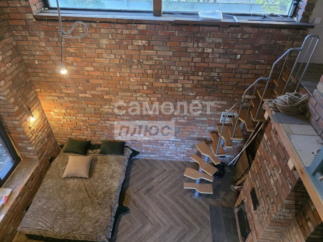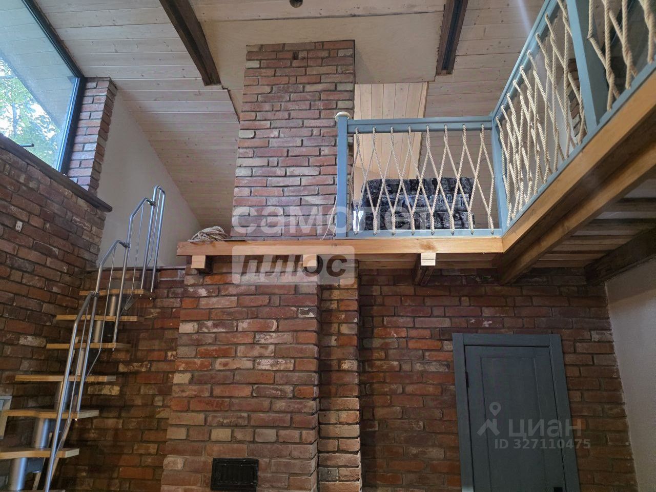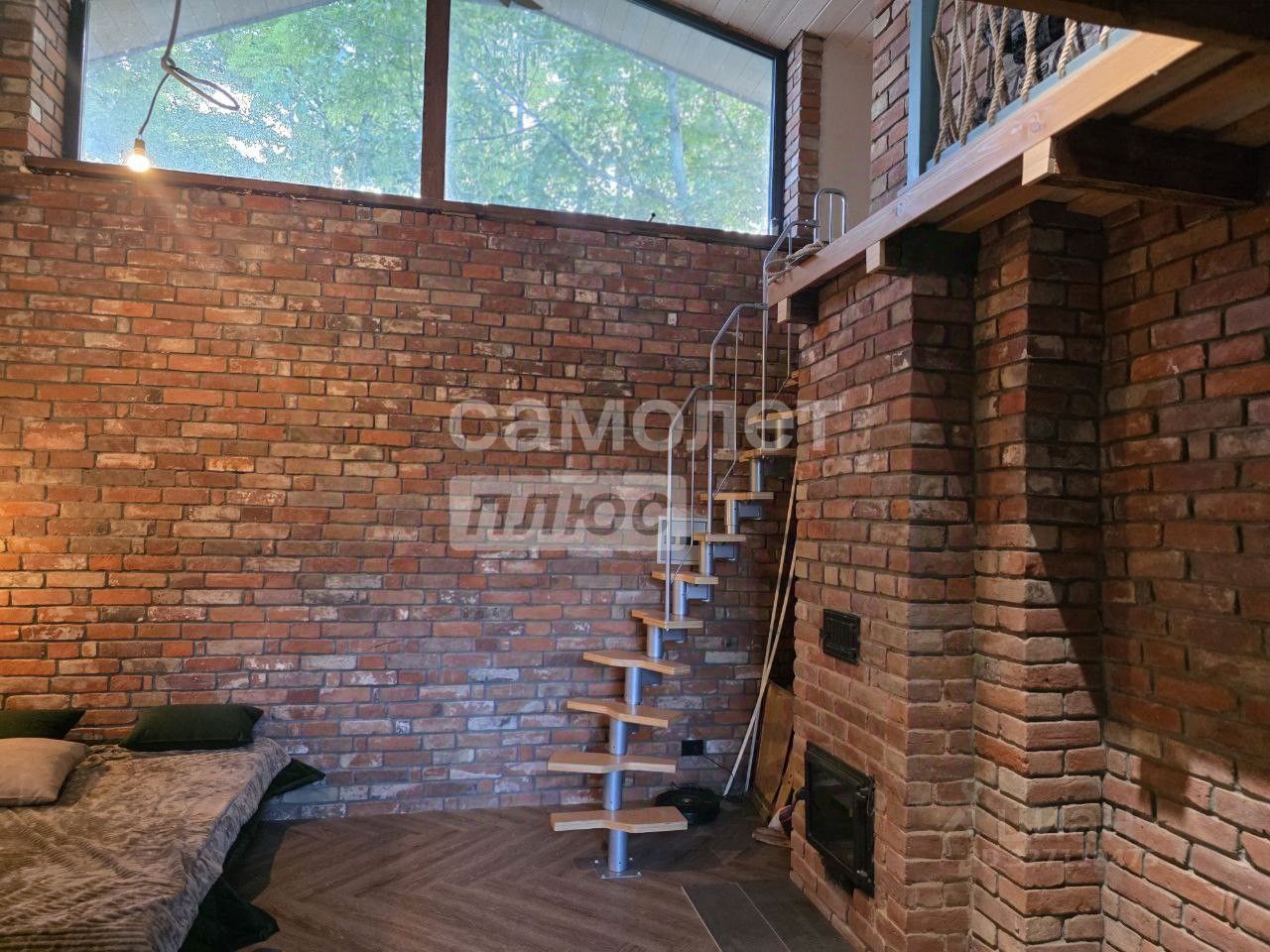 Просторная гостиная с большими стеклянными окнами открывает захватывающий вид на сад. В доме есть камин, сауна и дополнительный этаж с комнатой для отдыха. Теплый пол и газовое отопление обеспечивают комфорт.