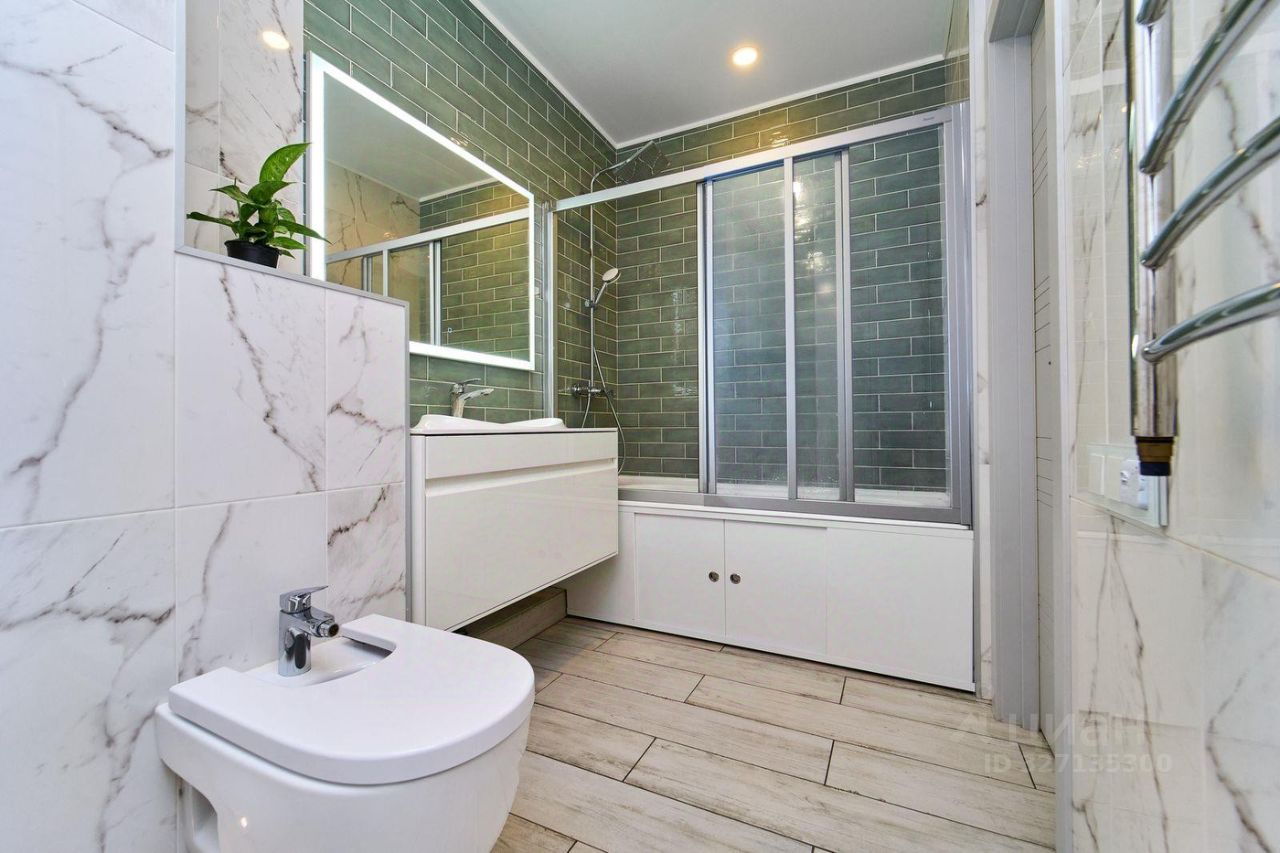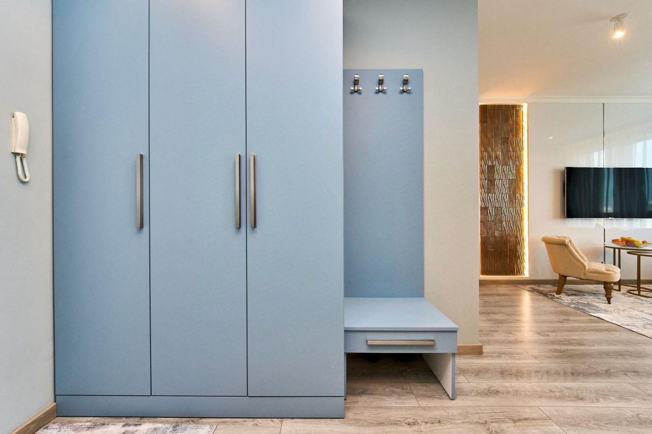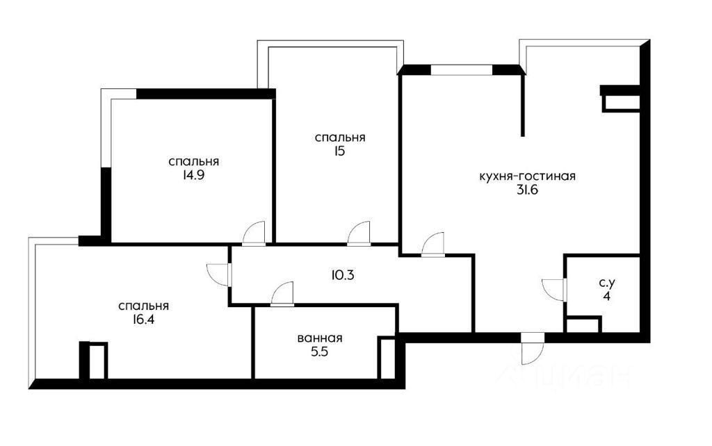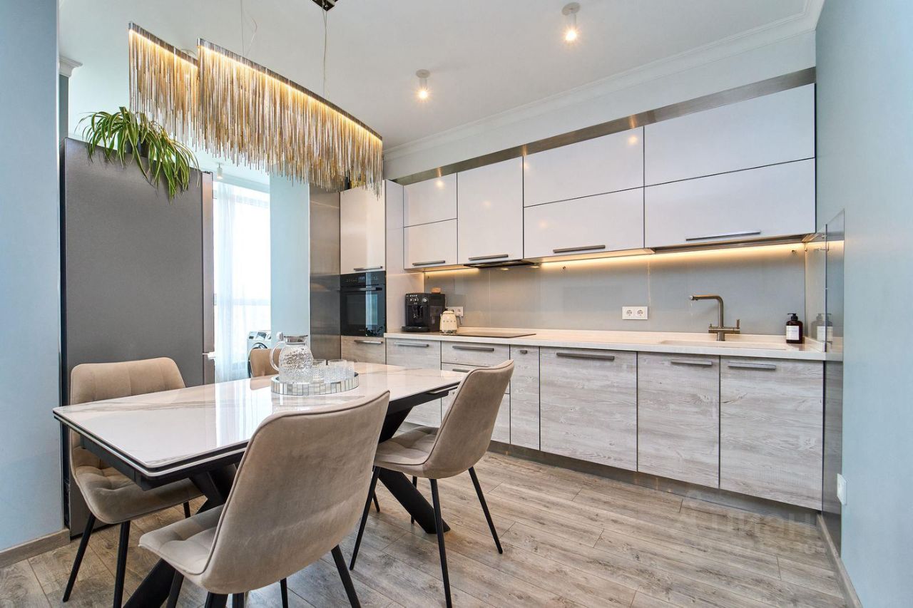 Общая площадь 100 м2 с панорамным видом из всех окон. Шикарная планировка с кухней-гостинной 31,6 кв.м., тремя изолированными комнатами и двумя санузлами.