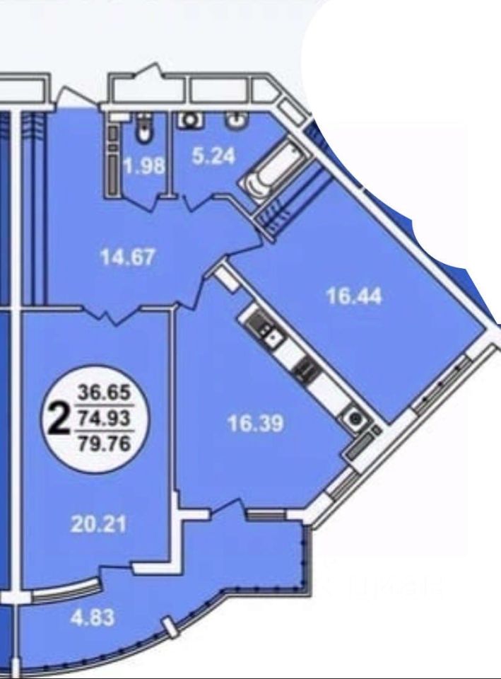 Общая площадь 85,8 кв.м, просторная кухня-гостиная площадью 61,9 кв.м, спальня и комфортная уютная ванная комната .