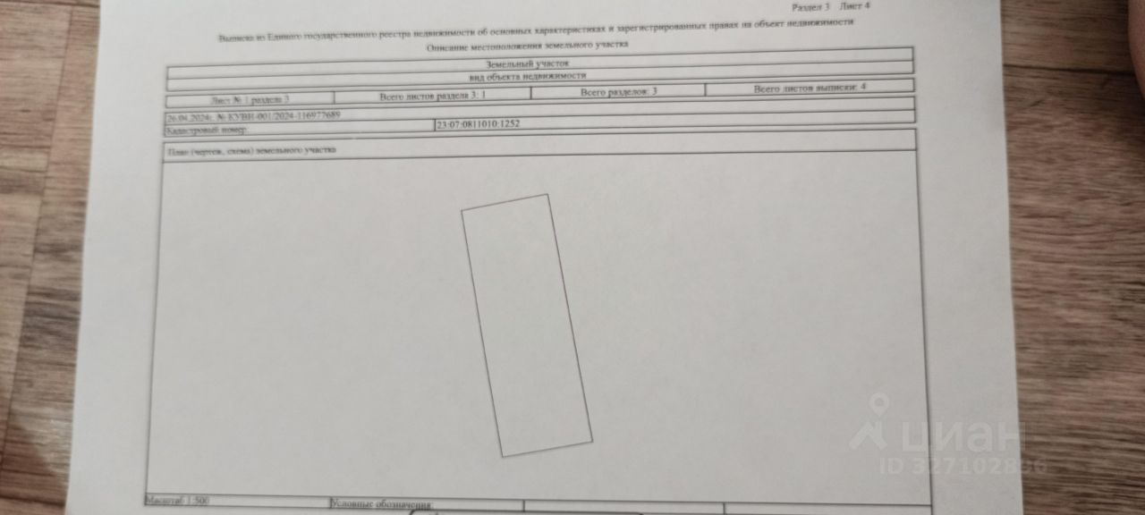 Размер 6,7 соток. Кадастровый номер: 23:07:0811010:1252
