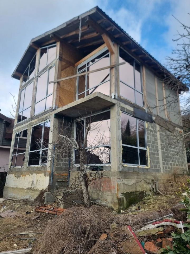 Земельный участок 6 соток Коттедж 60% готовности. незавершённое строительство. Документы есть. На участке бассейн , плодовые деревья, вид на море. Ст. Труд. Д. 36 , Дорога на большой Ахун.