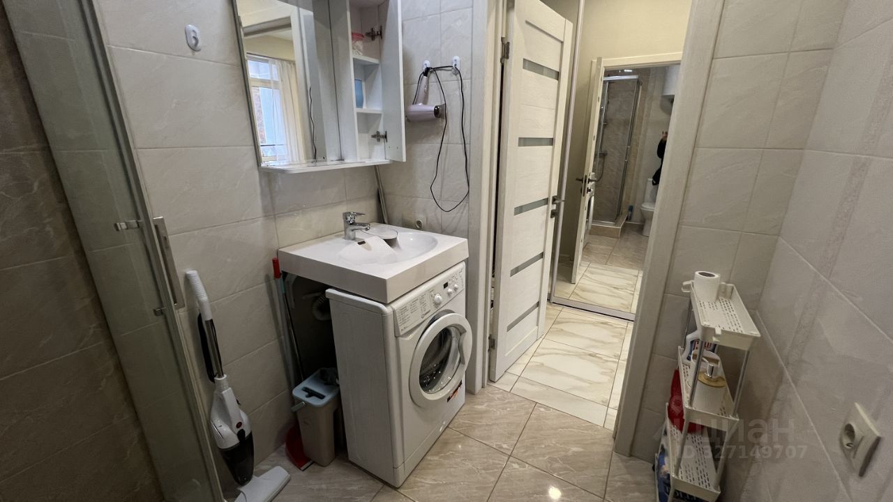 В квартире сделан качественный евроремонт, а также есть вся необходимая мебель и техника: кондиционер, холодильник, телевизор и стиральная машина. Удобная планировка позволяет максимально эффективно использовать пространство. В совмещённом санузле установлена душевая кабина.