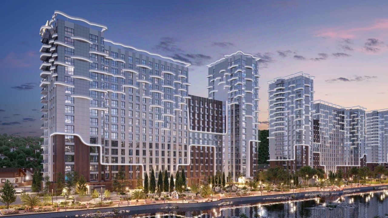 На закрытой территории комплекса выполнен ландшафтный дизайн, установлены безопасные детские площадки для детей всех возрастов, места для отдыха, зоны барбекю с беседками, спортивные площадки, установлен открытый бассейн. На территории также оборудована своя набережная протяженностью в 1,2км. Для владельцев автомобилей предусмотрен отдельный многоуровневый паркинг.