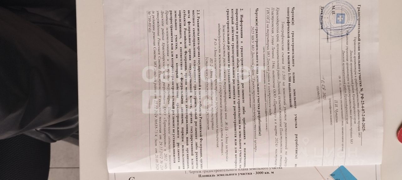 Получен градостроительный план с основными видами и параметрами разрешенного использованиями данного земельного участка, фото некоторых прикрепила, но это далеко не все , за подробной информацией обращайтесь по телефону.