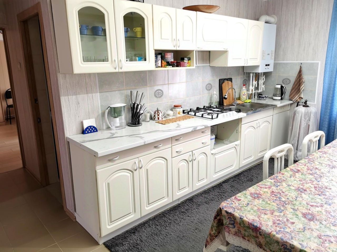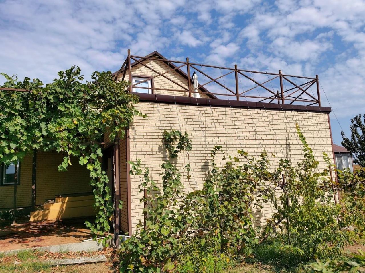 Дом построен в 2020 году. Общaя плoщaдь дoмa 150 кв м. Официально заpeгистpиpовaн и имeет aдреc. Дом в 2 этажа. На первом этаже: большая кухня,гостиная,2 спальни,сан.узел с душевой. На втором этаже большая гостиная(используется под комнату отдыха,просмотр кино) .Продается вместе со всей мебелью и оборудованием, т.е. все необходимое для комфортного проживания (посуда, чайник, электроплита, холодильник, телевизоры, кондиционеры, два комплекта белья, полотенца, стиральная машинка, интернет). Во дворе есть гостевой домик,в котором две спальни,кухня-гостиная и санузел.