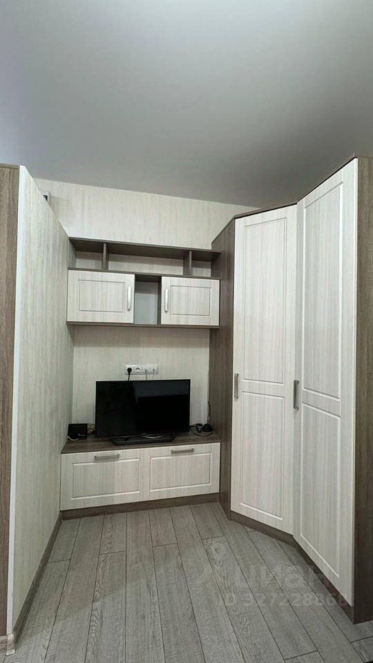 Внутри выполнен косметический ремонт. В студии имеется вся необходимая мебель: шкафы, диван и телевизор. Также присутствует холодильник и стиральная машина. Санузел совмещенный, оформлен в современном стиле.