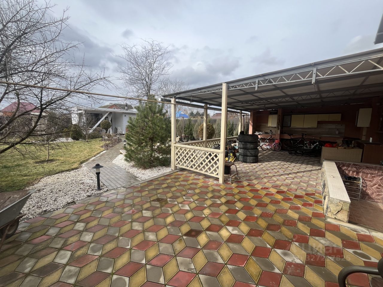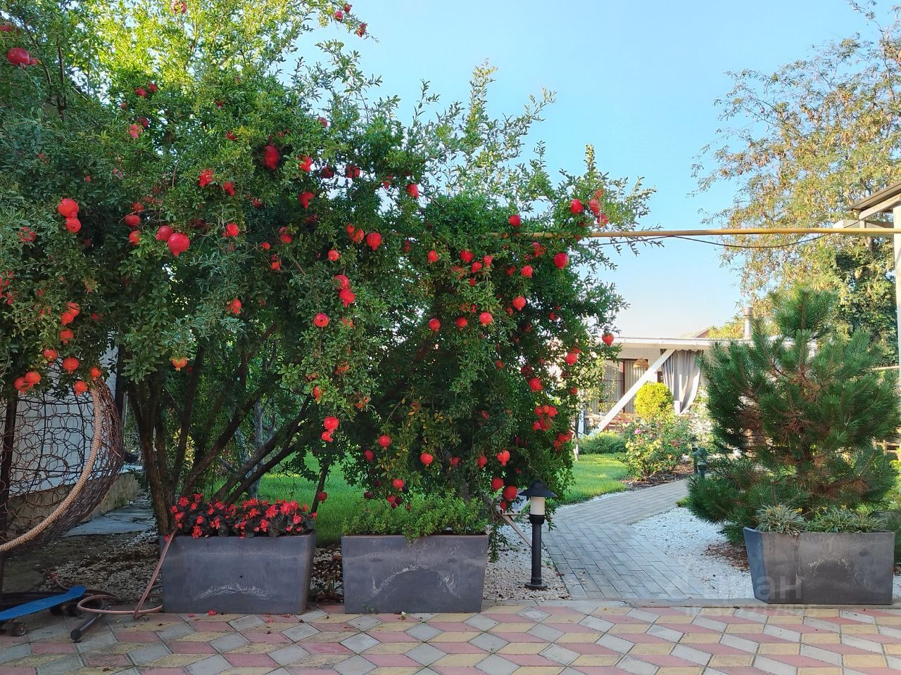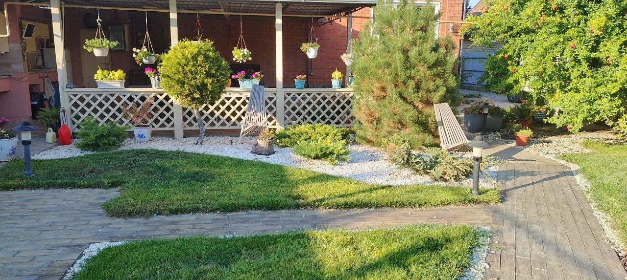 На участке 7,9 соток имеется ухоженный двор, вымощенный плиткой, клумбы с декоративными кустарниками, сад с плодовыми деревьями. Также на участке есть мангальная зона, зона летней кухни и крытая терраса. Отдельное внимание заслуживает большая баня на дровах с парилкой, душевой и уютной комнатой для отдыха, и гараж из блока с облицовкой площадью 35 кв.м. Дом расположен в хорошем районе по трассе Темрюк-Краснодар. В пешей доступности супермаркеты, детский сад, школа, продовольственные, хозяйственные магазины салон мебели, аптека, пекарня, остановка общественного транспорта на все направления, в общем всё, что нужно для комфортной жизни.