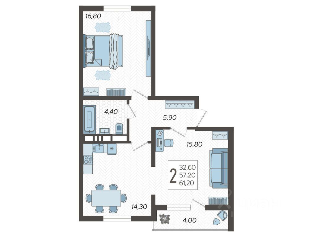 В продаже 2-комнатная квартира площадью 61.2, расположенная Литер 3 жилого комплекса комфорт+ класса ''Горный квартал''. Комплекс от девелопера AVA находится в Сочи, Хостинского района, в 15 минутах езды от центра города.