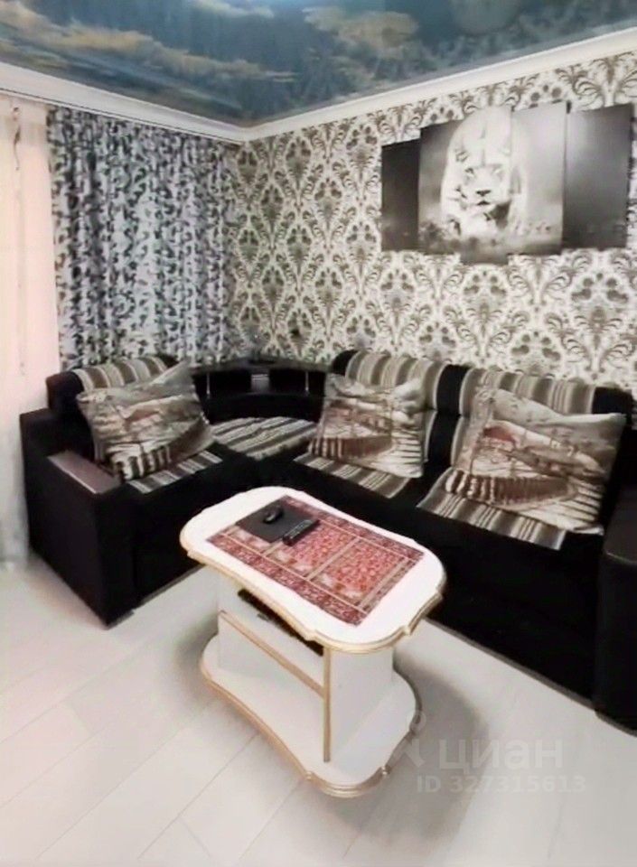 Планировка: Общая площадь 33 кв.м. комната разделена на две зоны: спальная комната и гостиная где стоит диван и телевизор, кухня 7.8 кв.м, совместный санузел. Квартира находится на 1-м этаже много этажного дома.
