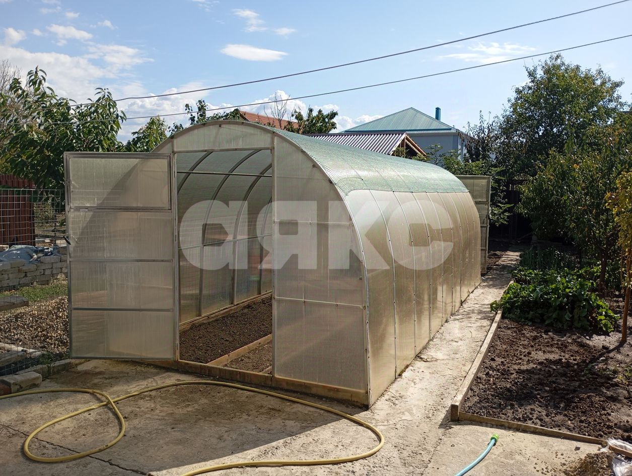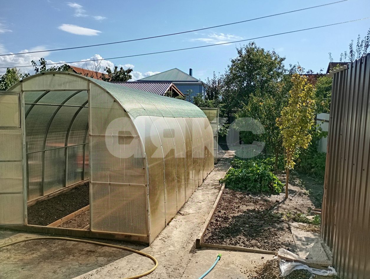 Имеется небольшой огород с посадками, плодовыми деревьями, виноградом, теплица. Перед домом имеется место для парковки машины.
