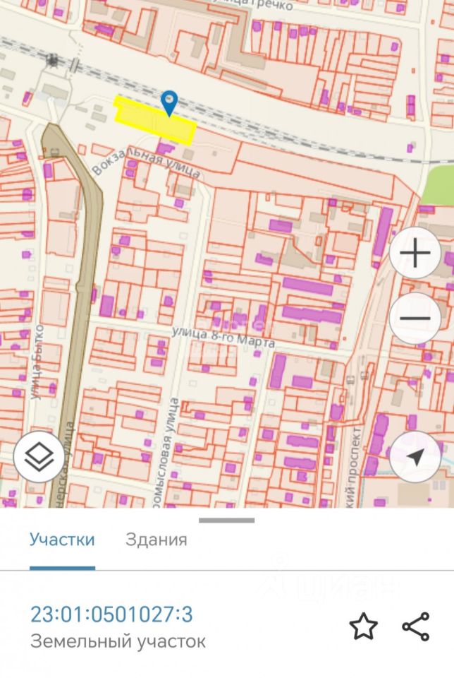 1. Кадастровый 23:01:0501027:2 (Абинск, ул. Вокзальная)