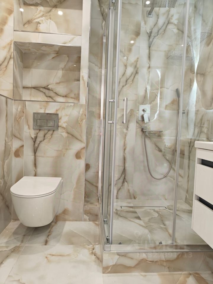В квартире сделан дизайнерский ремонт, всё продумано до мелочей. На кухне и в комнате есть вся необходимая мебель. Из техники — кондиционер, холодильник и стиральная машина. Санузел совмещённый, оборудован современной душевой кабиной. Балкон также присутствует, где можно насладиться свежим воздухом.