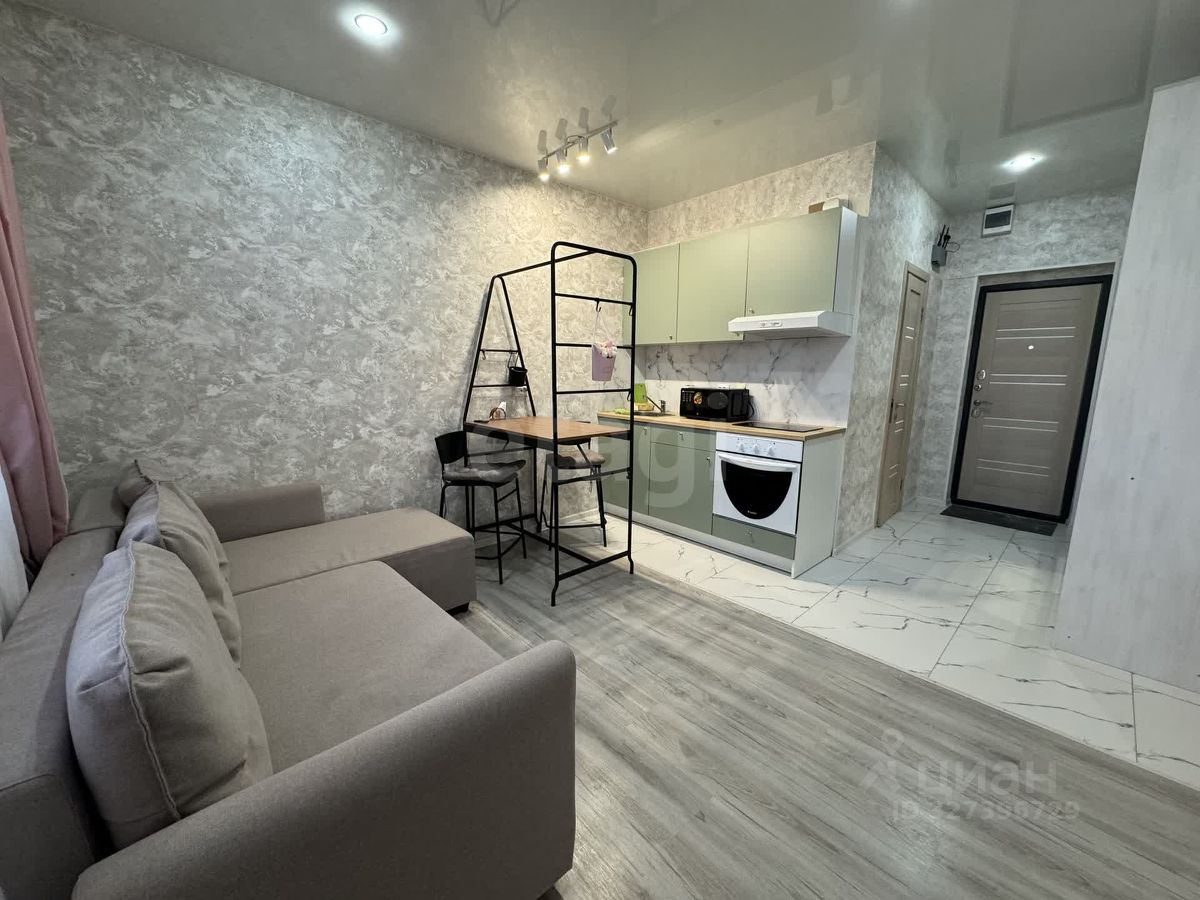 Сдаётся студия на длительный срок в ЖК ''Студия 45''. Квартира полностью готова к комфортному проживанию благодаря выполненному качественному ремонту. В студии установлен кухонный гарнитур с варочной панелью, духовым шкафом и вытяжкой. Особенностью объекта является утепленный балкон с системой теплого пола, что увеличивает полезную площадь и позволяет использовать его круглогодично. Окна выходят на солнечную сторону, обеспечивая квартиру естественным светом.