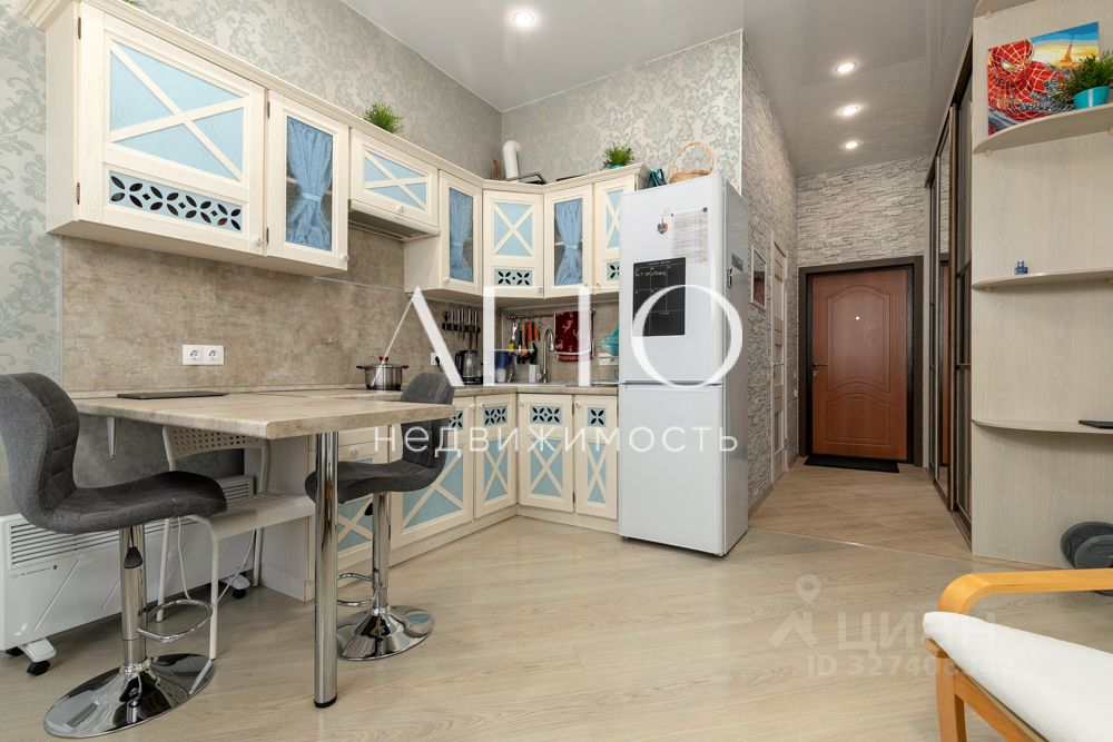 Просторная студия продаётся со всей техникой и мебелью, вам останется только разложить свои вещи на полки