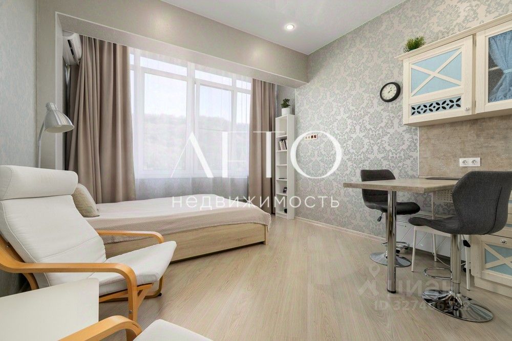 Просторная студия продаётся со всей техникой и мебелью, вам останется только разложить свои вещи на полки