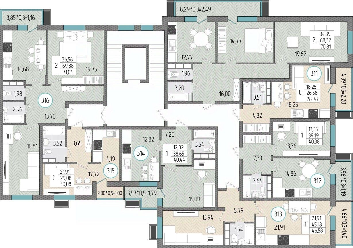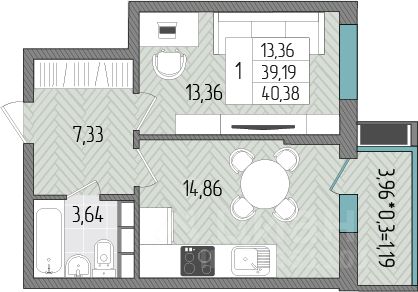 Общая площадь40,38 м2