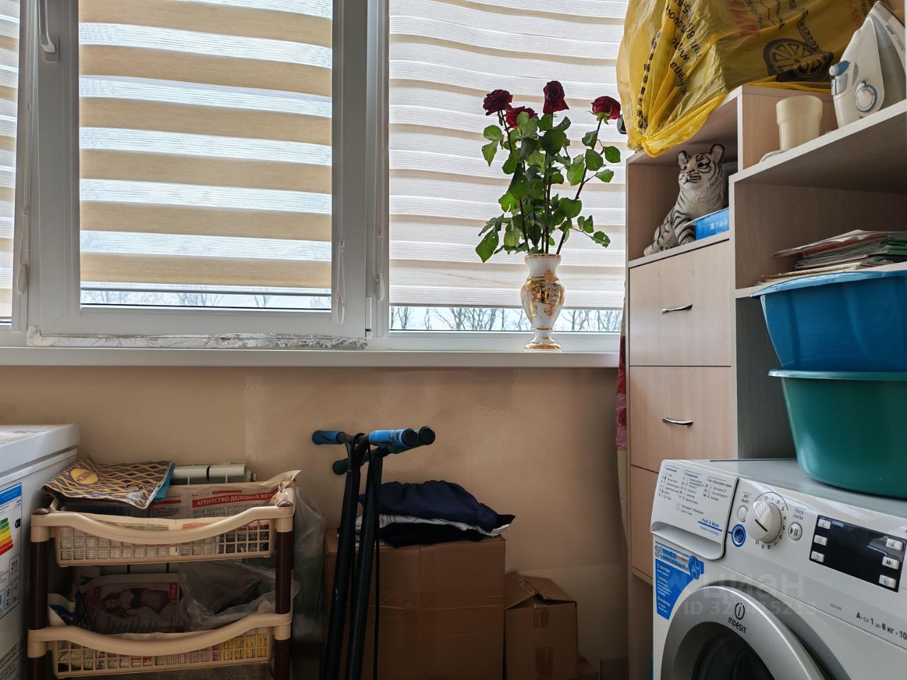 Балкон оснащен полочками для удобного хранения всяких нужностей.