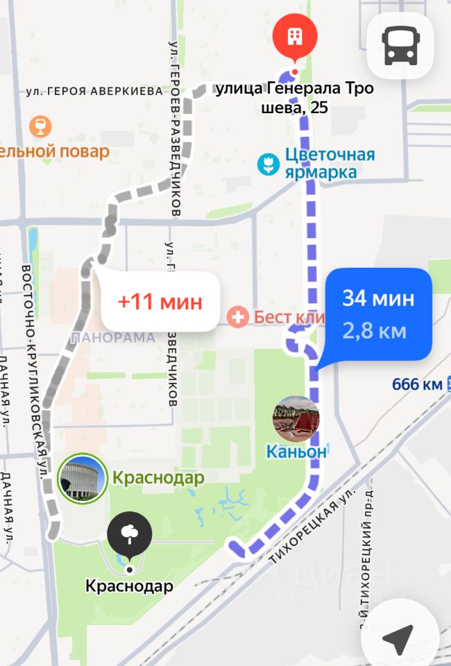 До парка Галицкого, стадиона Краснодар (OZON Арена) пешком 2,8 км, на авто 4 км.