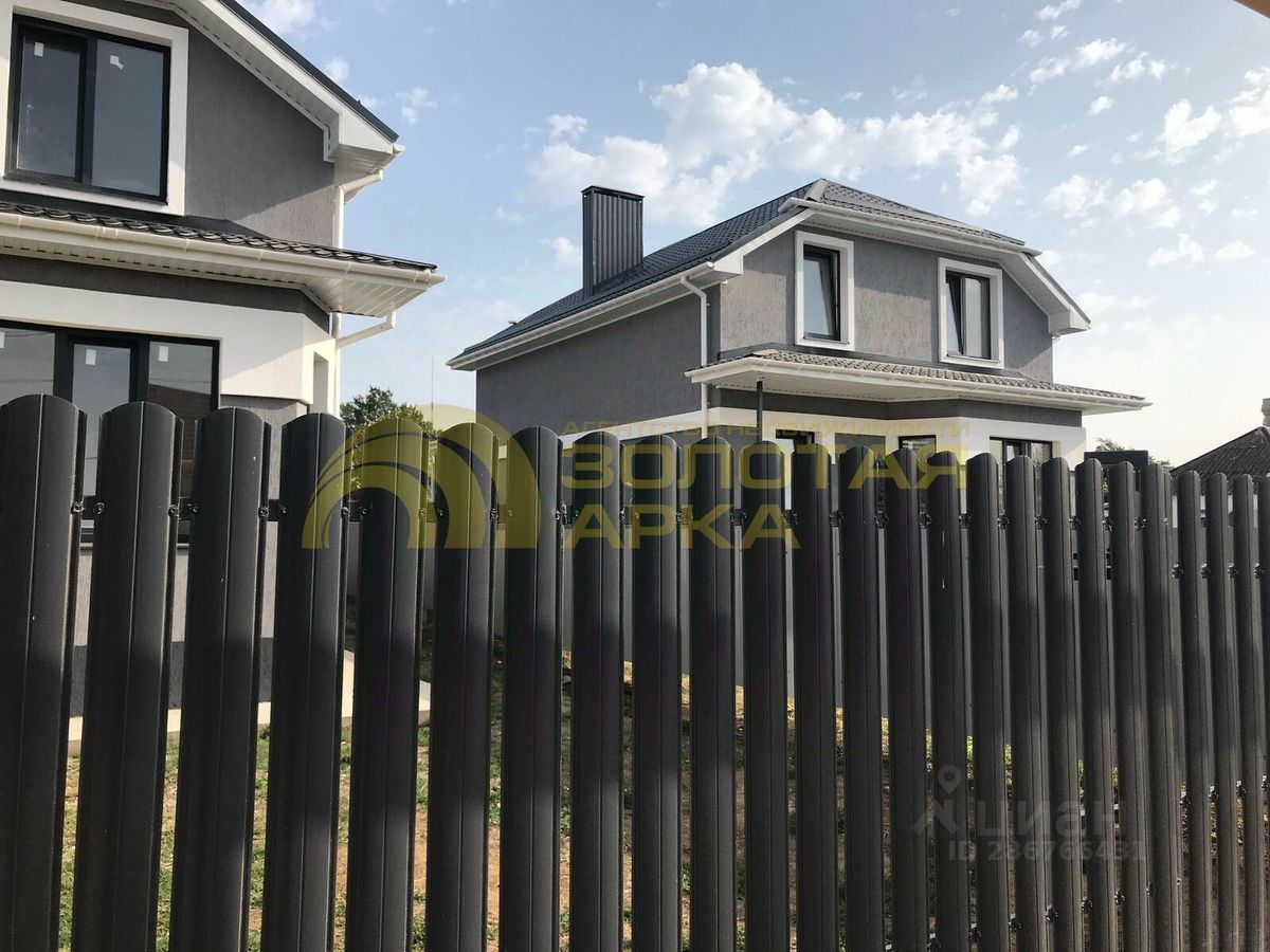 По всему периметру - забор. Раздвижные ворота с калиткой.