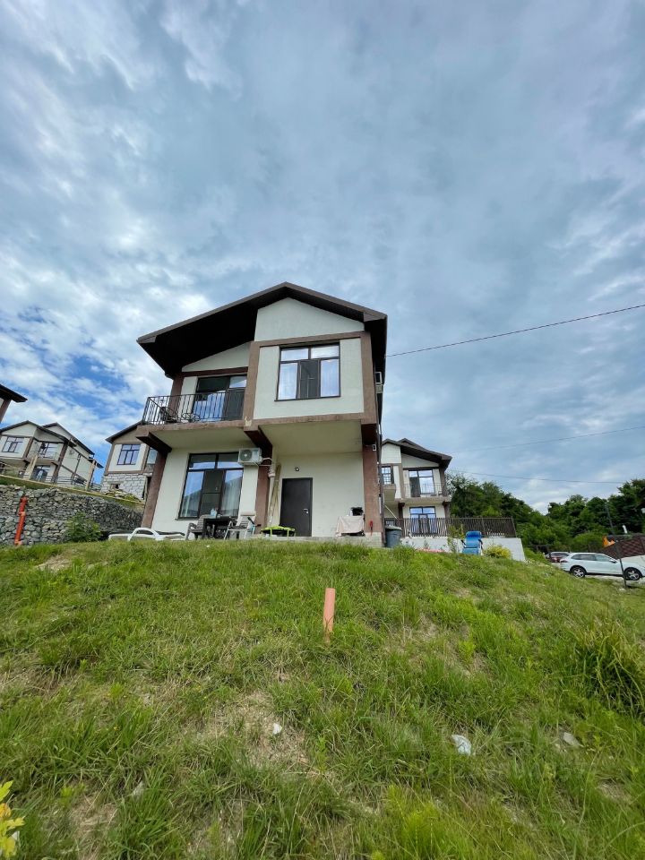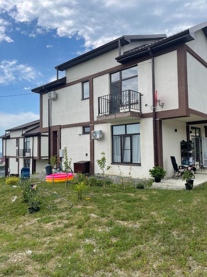 Продается просторный 2-х этажный дом 130 кв.м в посёлке Высокое, который находится в гористой местности, вдали от туристов и лишних глаз, в спокойствии и безмятежности. Коттеджный посёлок Благодать состоит из 30-40 типовых домов, которые заселены семьями, в основном с детьми. Территория участка - 4.8 сот., есть проект на благоустройство. В доме вся техника и мебель, при продаже входят в стоимость. Планировка: В доме два разных входа, с задней стороны вход в отдельную студию 30 квм с кухней и с/у(можно разместить родителей или сдавать в аренду), а с главной стороны вход в основную часть дома, 2 этажа: 1 этаж: кухня-гостиная, с/у с душевой - кухня с посудомоечной машиной на 60, варочная панель, духовой шкаф, СВЧ печь, чайник, кофеварка. Комплект посуды и все для приготовления еды. - диван-кровать для 2 человек. ТВ 2 этаж: 4 спальни, с/у с ванной, гардеробная и 2 балкона. спальня с кроватью king size 180/200 спальня с кроватью queen size 160/200 спальня с кроватью 90/200 спальня с диван-кроватью Рабочее место в одной спальне. Wi-fi от провайдера