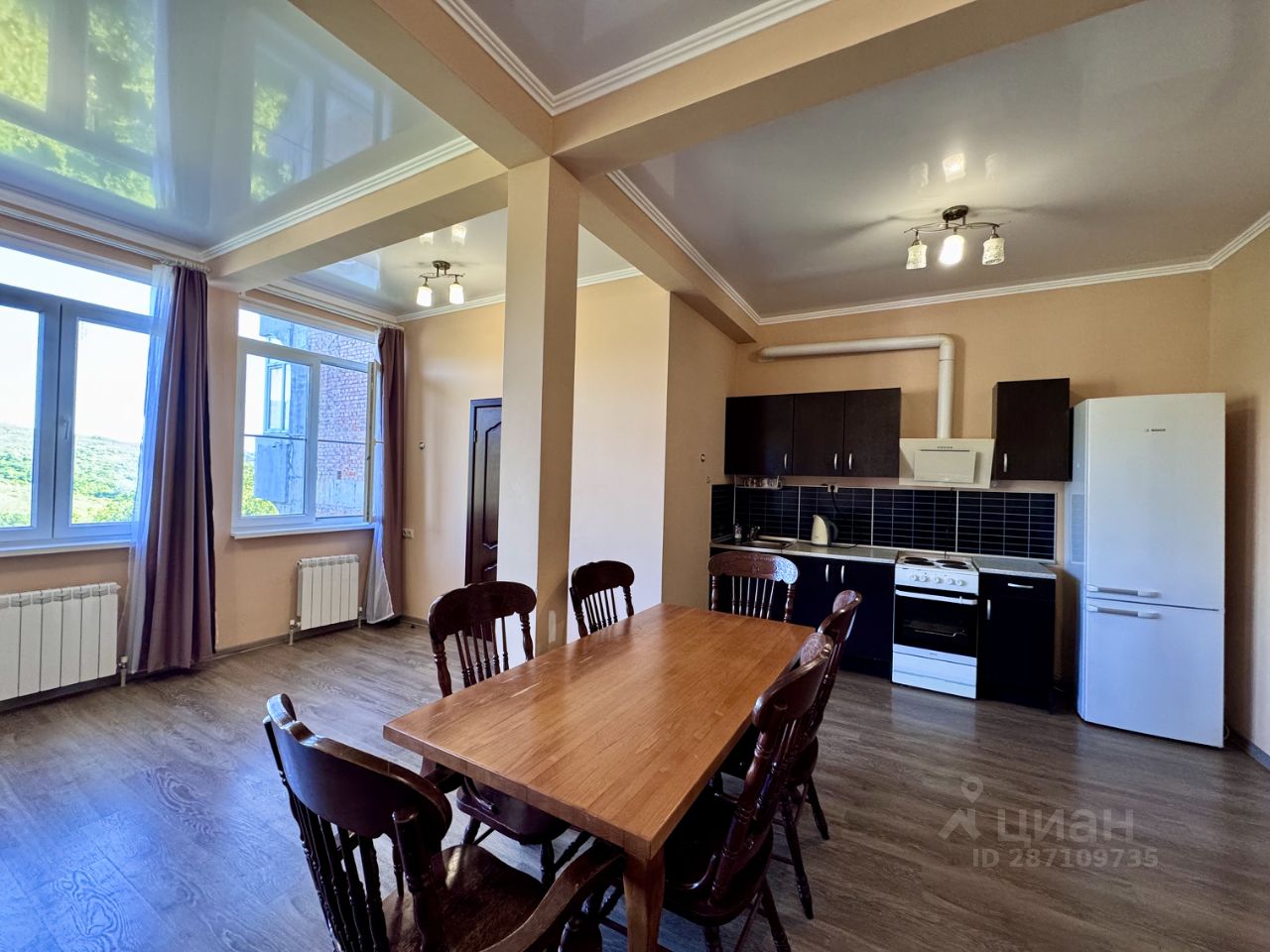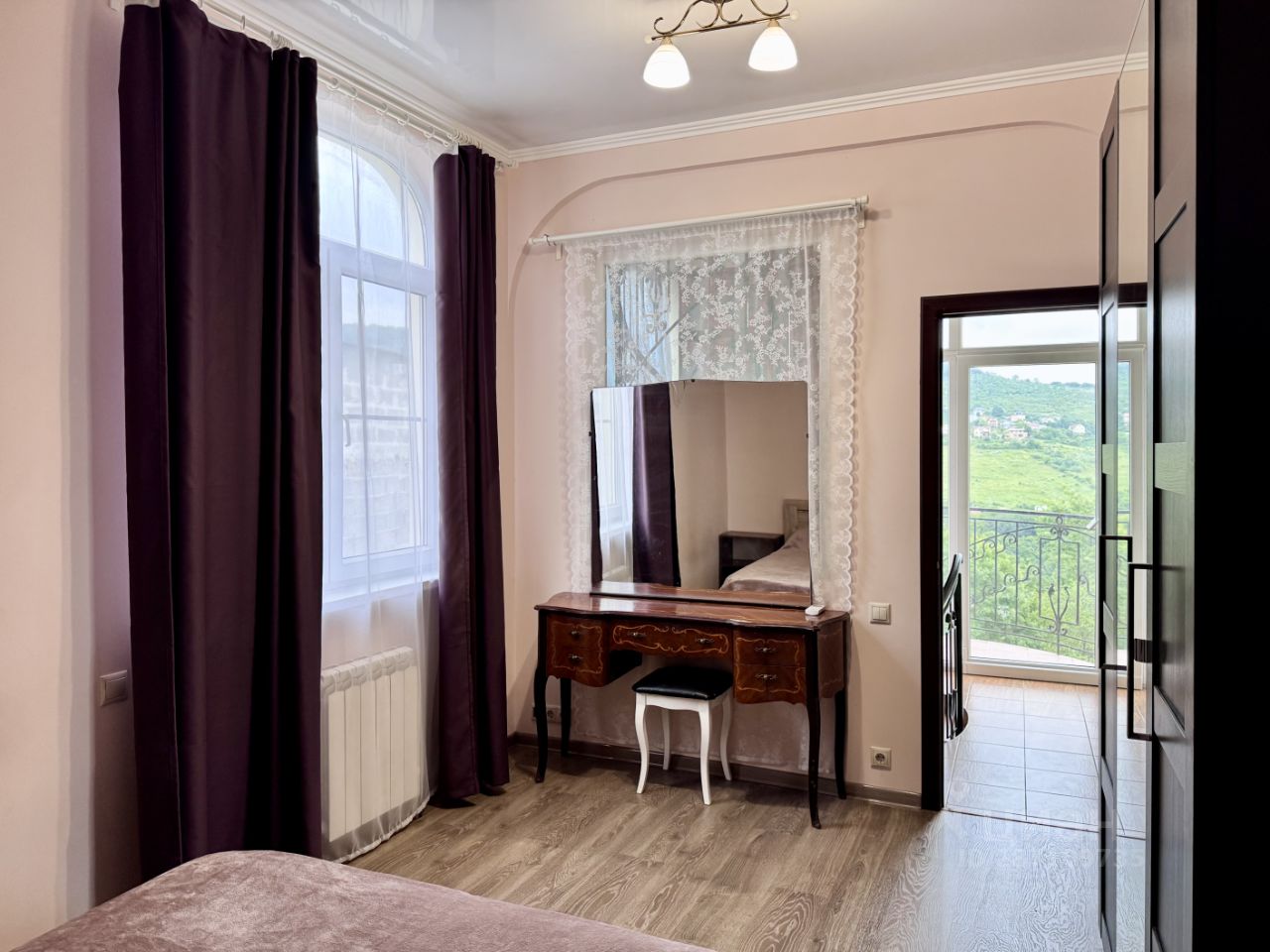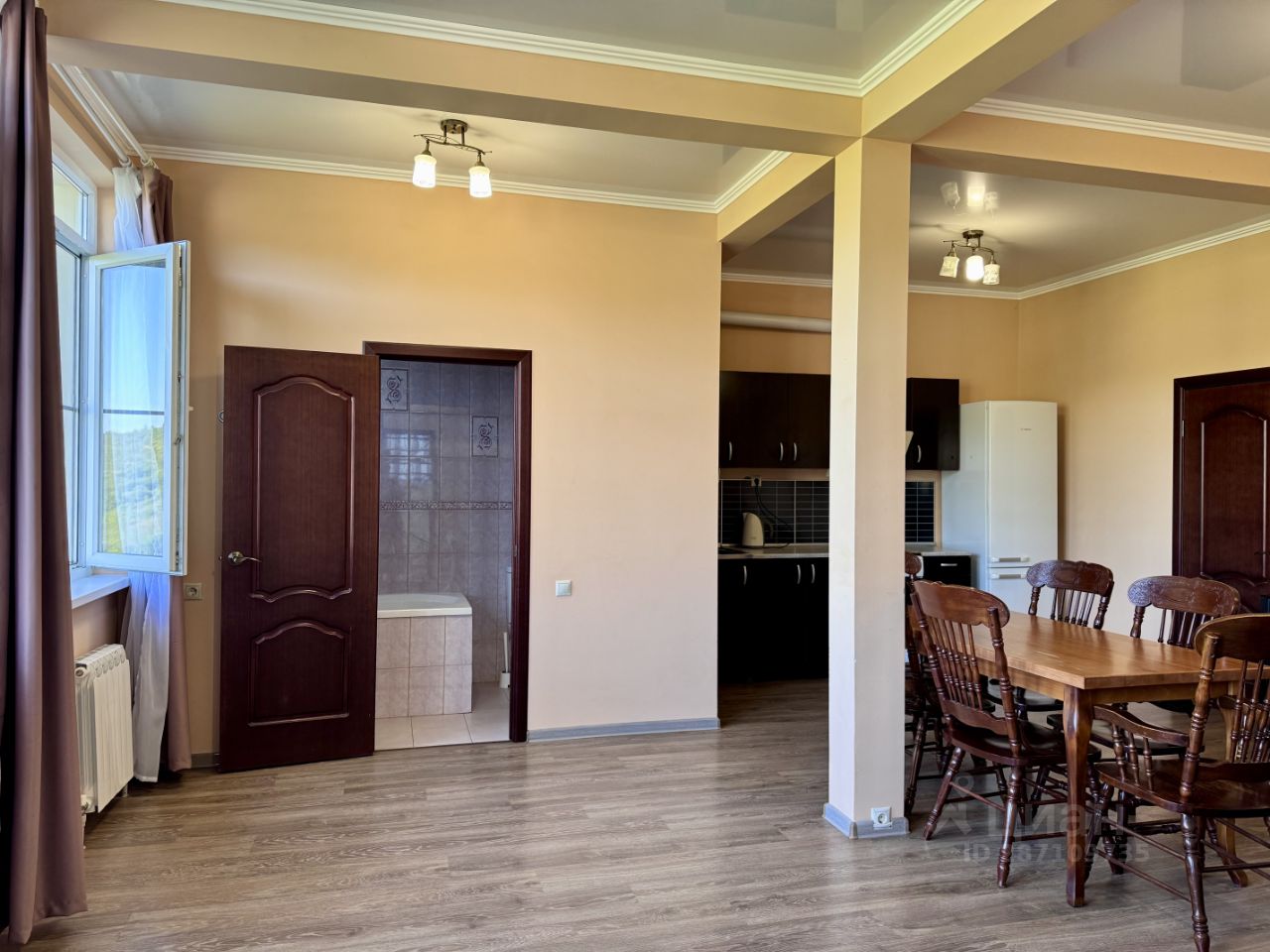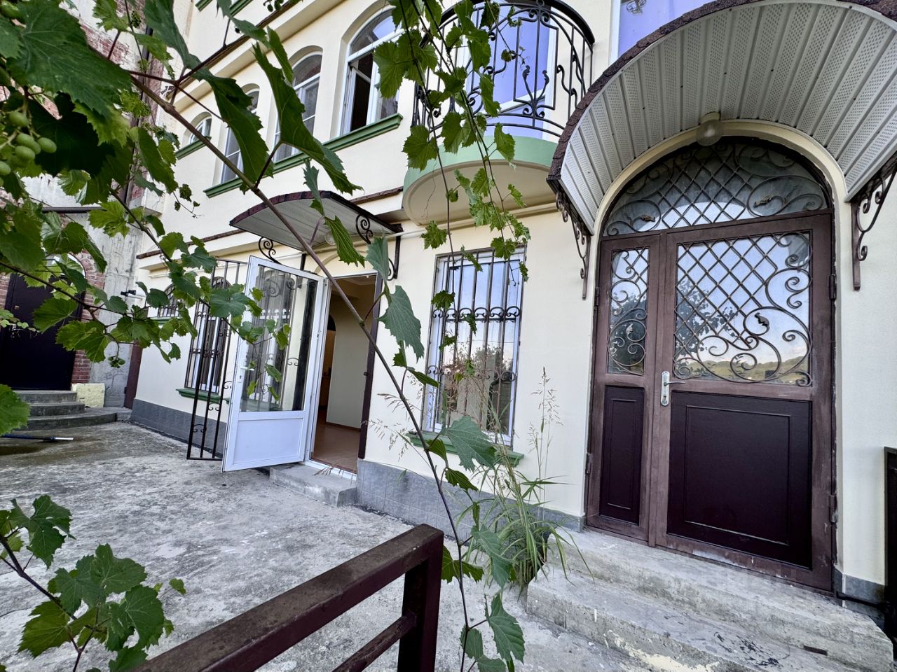 Дом расположен в черте города, находится на частной огороженной территории, есть 2 парковочных места только для жильцов дома. Подъезд по асфальтированной дороге, у дома бетонная дорога. —В доме есть 3 отдельные спальни с двуспальными кроватями, раскладной диван в гостиной, 3 санузла. 1 ЭТАЖ ( цокольный) : санузел (отдельный туалет и ванная), установлена стиральная машина. Оттуда выход на террасу и в сад. 2 ЭТАЖ (попадаете на него с дороги в дом) : прихожая, лестница вниз на 1 этаж и выход в сад, балкон, винтовая лестница на 3 этаж, 2 отдельные спальни с двуспальными кроватями с ортопедическими матрасами 140х200 см, санузел с душем. 3 ЭТАЖ: большой балкон, отдельная спальня с двуспальной кроватью с ортопедическим матрасом 140х200 см, кухня-гостиная с диваном-кроватью, санузел с ванной, кладовая. На кухне есть все необходимое: холодильник с морозильной камерой, электрическая плита с духовкой, электрический чайник, микроволновая печь. В доме есть батареи на 2-3 этажах, теплые полы в санузлах , в прихожей, полностью на 1 этаже тоже теплые полы, есть 3 кондиционера.