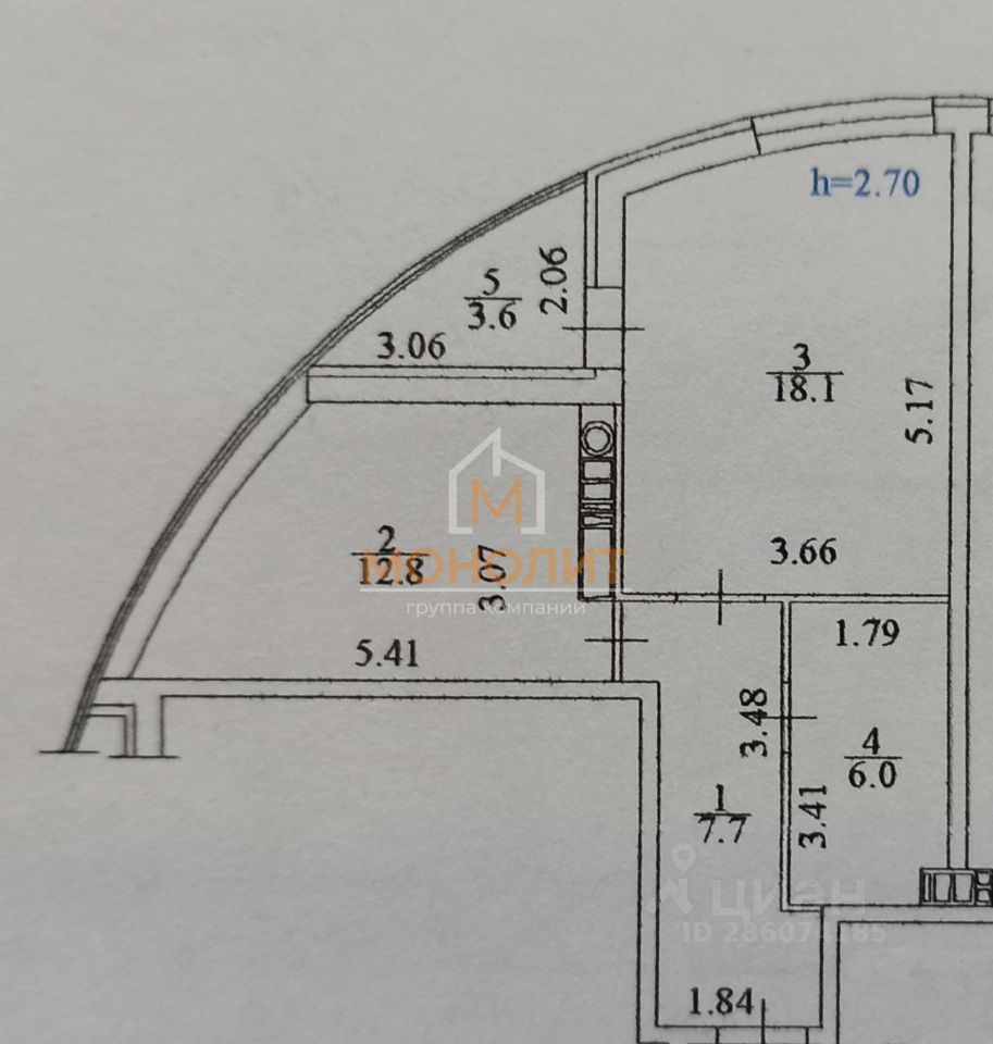 Продается шикарная большая 1-комнатная квартира 44,6 квадратных метра.
