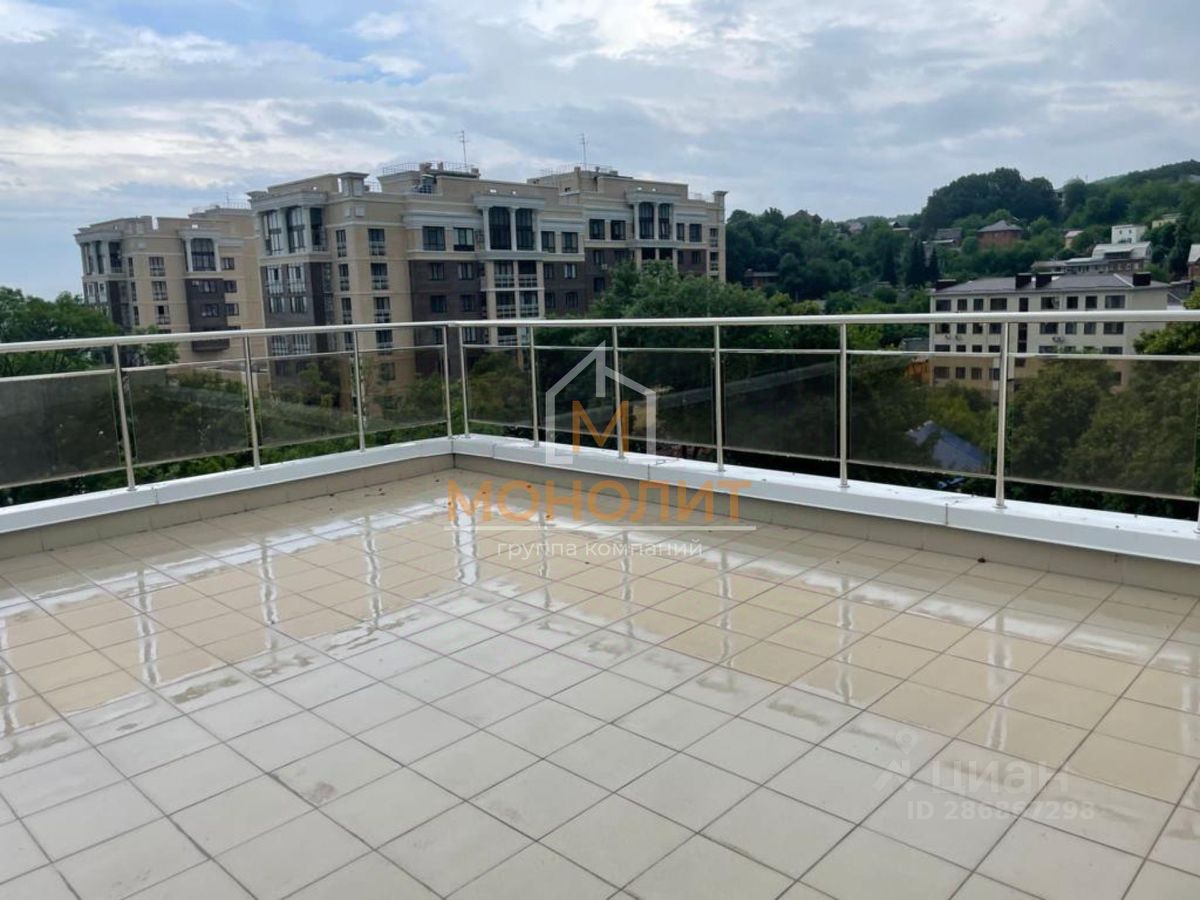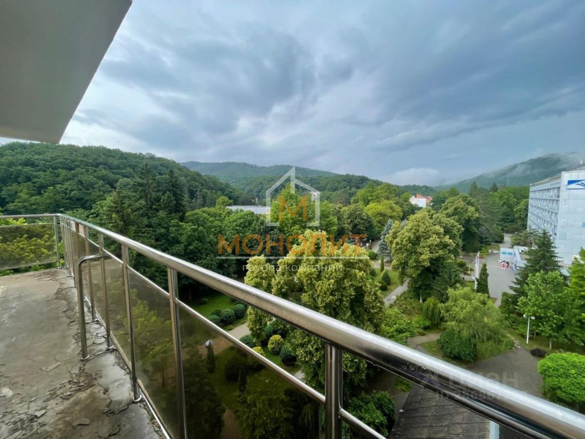 Есть большой балкон, терраса. Вид из окон квартиры открывается завораживающий - горы, санаторная зона. Много зелени, цветущих растений. Дом находится в тупике, туда заезжает мало машин - воздух кристально чистый, насыщен горной свежестью.