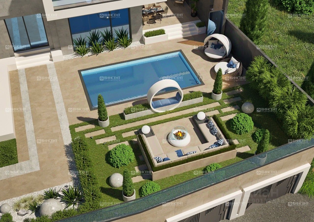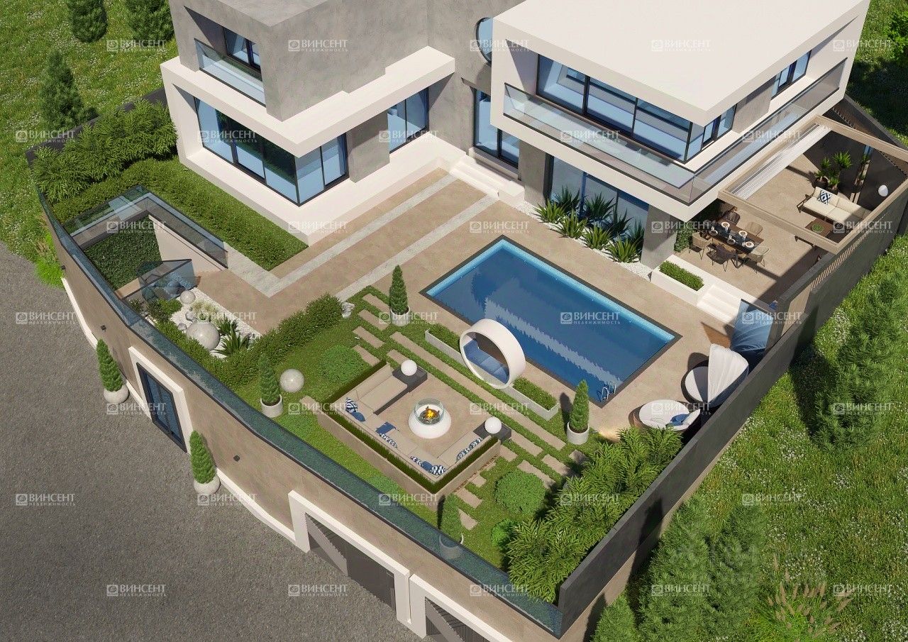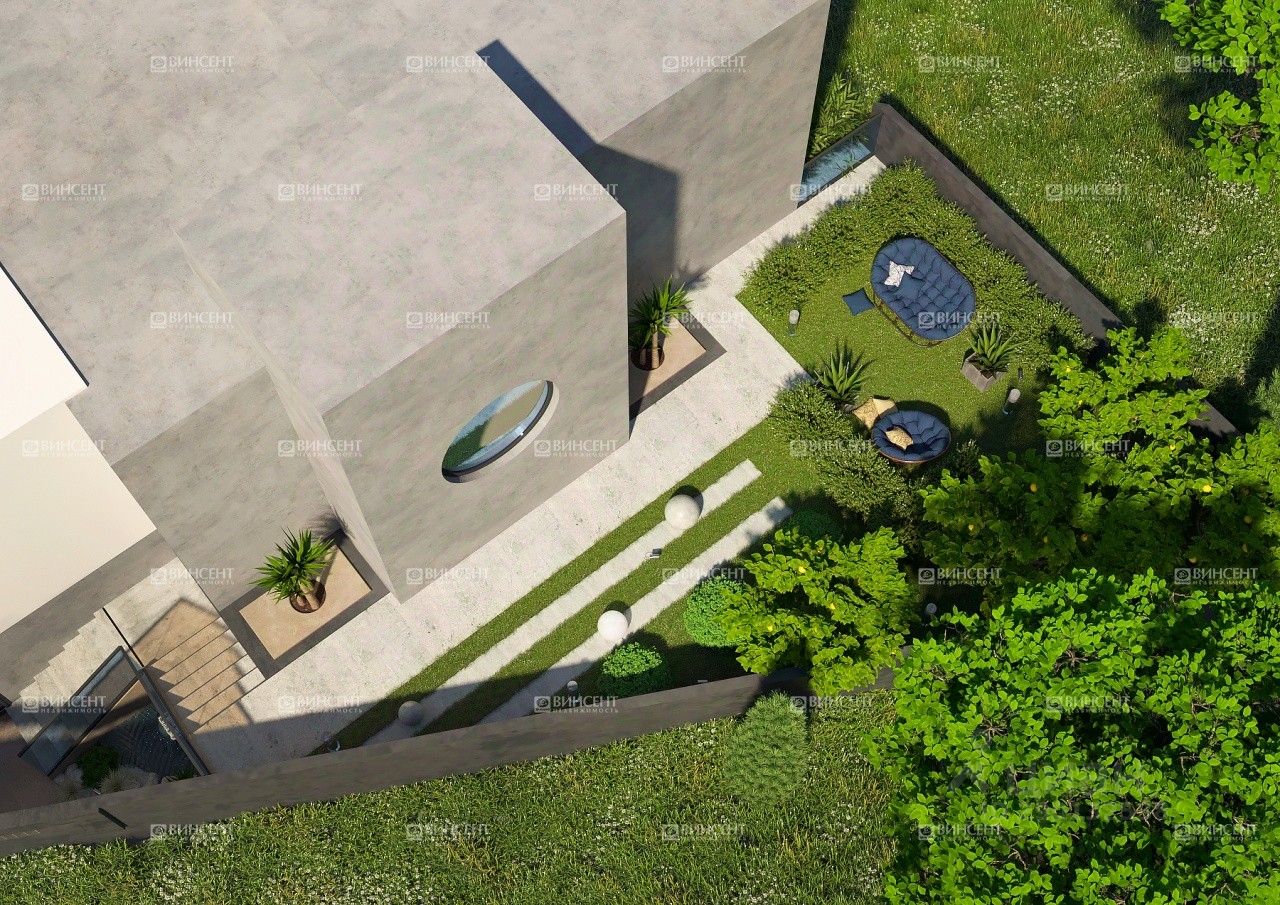 Придомовая территория Площадь участка, на котором находится дом, составляет 7 соток. Рельеф практически идеально ровный, что для Сочи большая редкость. Есть готовый проект для ландшафтного дизайна, который будет подчеркивать эстетику самого дома.
