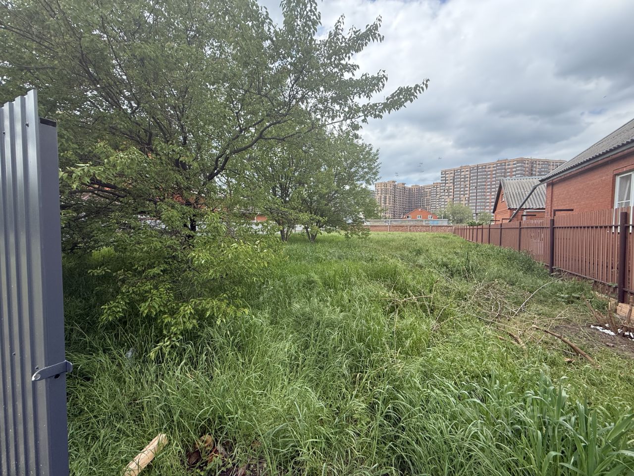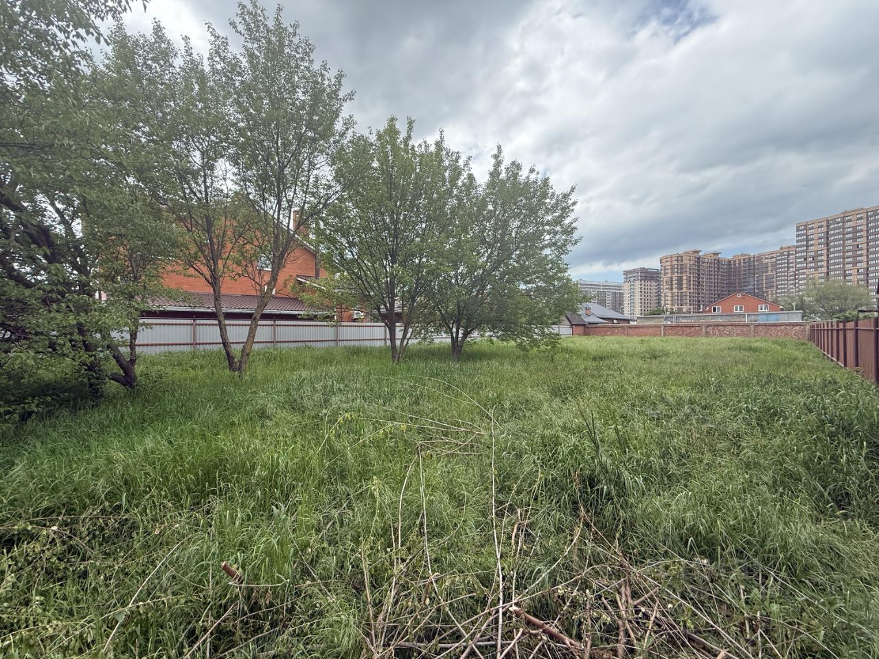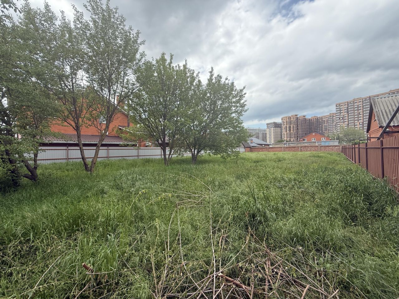 Соседи есть со всех сторон, это то место где не будет построено многоэтажное жилое здание, единственный земельный участок на улице.