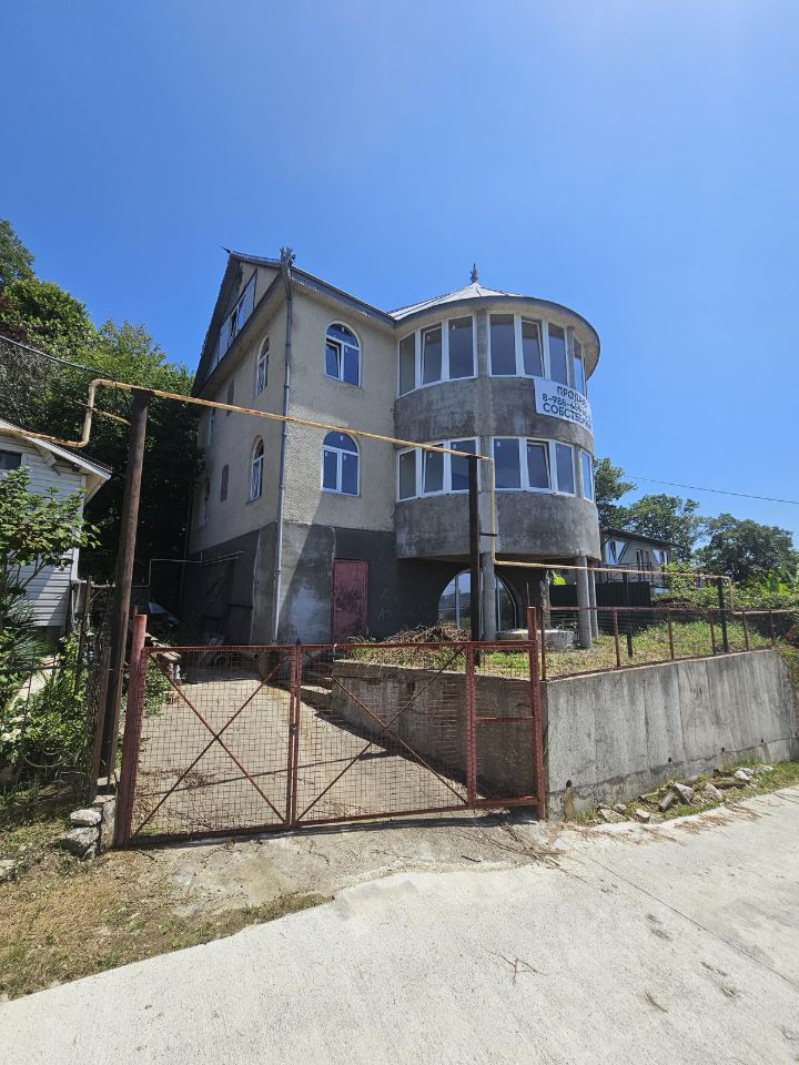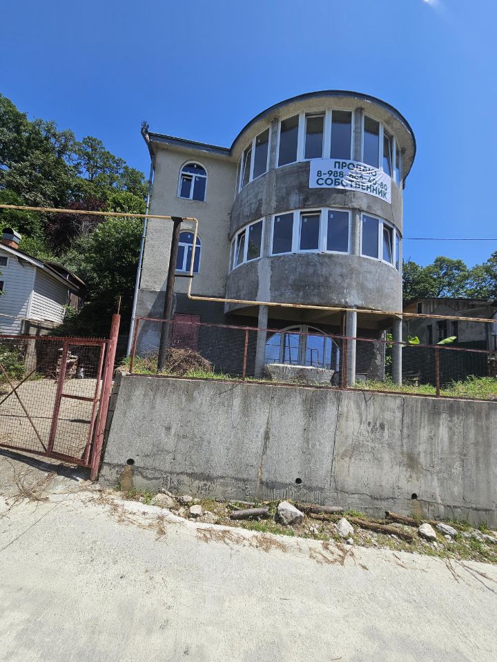 Идеальный проект опытного известного многим архитектора. Местоположение шикарное на вершине. Есть выход в лес из плодоносящего сада. Построен капитально как Фамильный дом сверх надёжно на вечно с расчётом на устойчивость к 8-ми баллам. Рядом ходит автобус. Дорога асфальт в 50 м и бетонка к дому. Вид из окна всех этажей и лоджии поражает взгляд и вызывает наслаждение обзором моря, стадиона и нескольких горных вершин курорта. Сам дом может быть спланирован по желанию нового собственника. Площадь дома значительно больше документальной за счёт большой мансарды 76 м.кв. и участок по границе дикого леса может быть расширен. Являюсь единственным собственником много лет. Дом был в консервации. В нём никто никогда не жил. Парковка на 2 авто на территории дома. Желающие купить дом, звоните для получения подробностей.