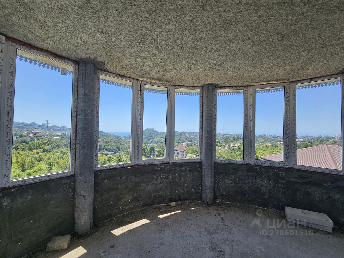 Идеальный проект опытного известного многим архитектора. Местоположение шикарное на вершине. Есть выход в лес из плодоносящего сада. Построен капитально как Фамильный дом сверх надёжно на вечно с расчётом на устойчивость к 8-ми баллам. Рядом ходит автобус. Дорога асфальт в 50 м и бетонка к дому. Вид из окна всех этажей и лоджии поражает взгляд и вызывает наслаждение обзором моря, стадиона и нескольких горных вершин курорта. Сам дом может быть спланирован по желанию нового собственника. Площадь дома значительно больше документальной за счёт большой мансарды 76 м.кв. и участок по границе дикого леса может быть расширен. Являюсь единственным собственником много лет. Дом был в консервации. В нём никто никогда не жил.
